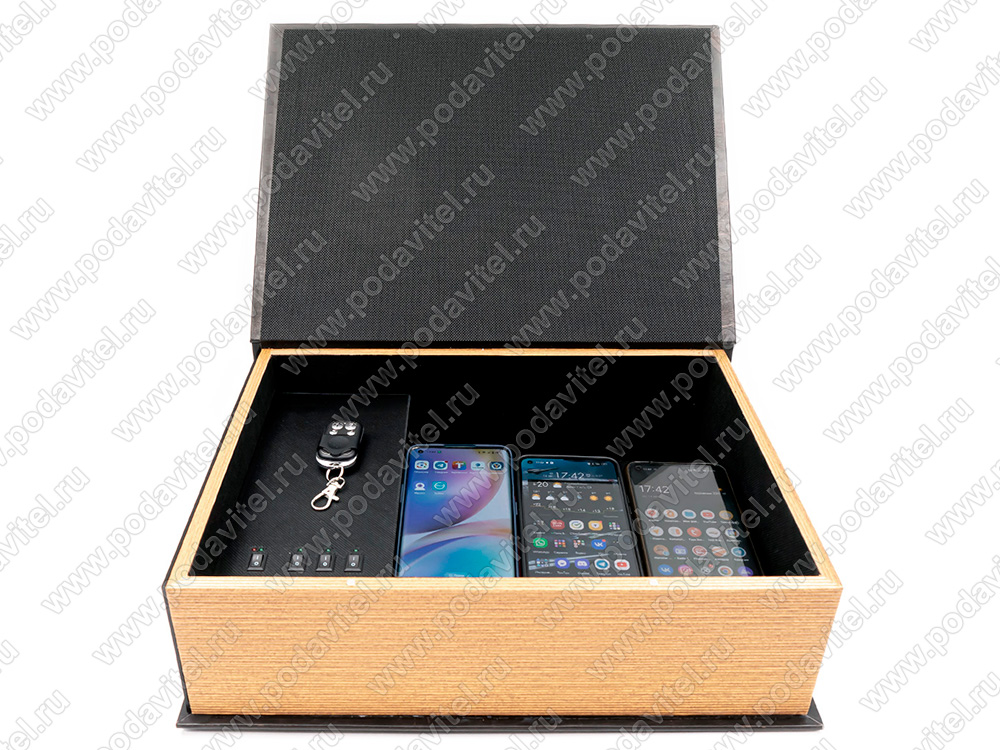 Прибор выполнен в форме большой книги или шкатулки, не привлекает внимание и вмещает большое количество мобильных устройств - до 6 штук. Прибор оснащен аккумулятором большой емкости, что позволяет использовать акустический сейф и автономно на протяжении 30-60 минут, обеспечивая безопасность на выездных встречах. Акустический сейф «SPY-box Шкатулка-2 GSM-VIP» используется для обеспечения безопасности от несанкционированной записи переговоров и радиочастотной передачи данных.